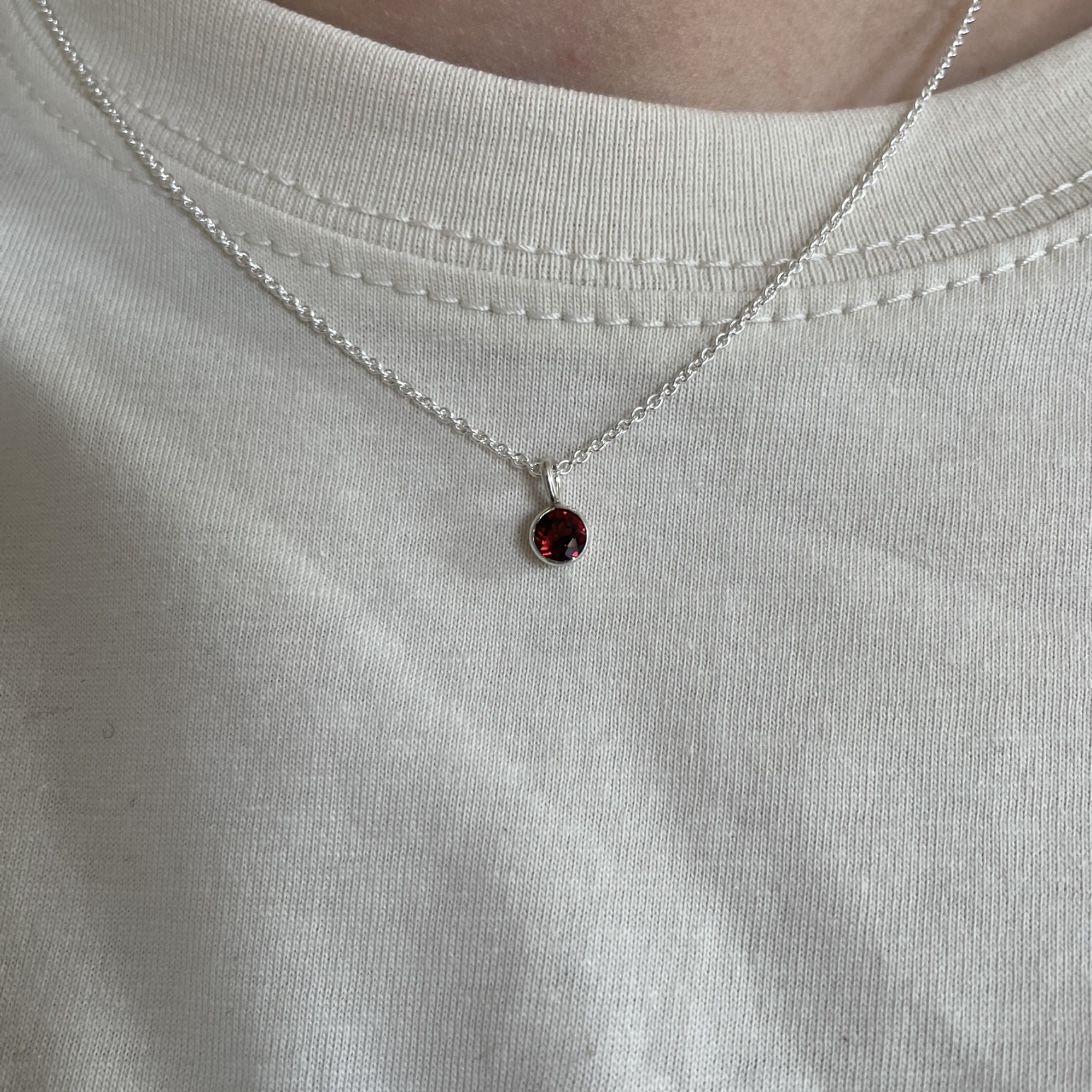 925 silver, äkta mörkröd granat, inklusive kedja 42cm.