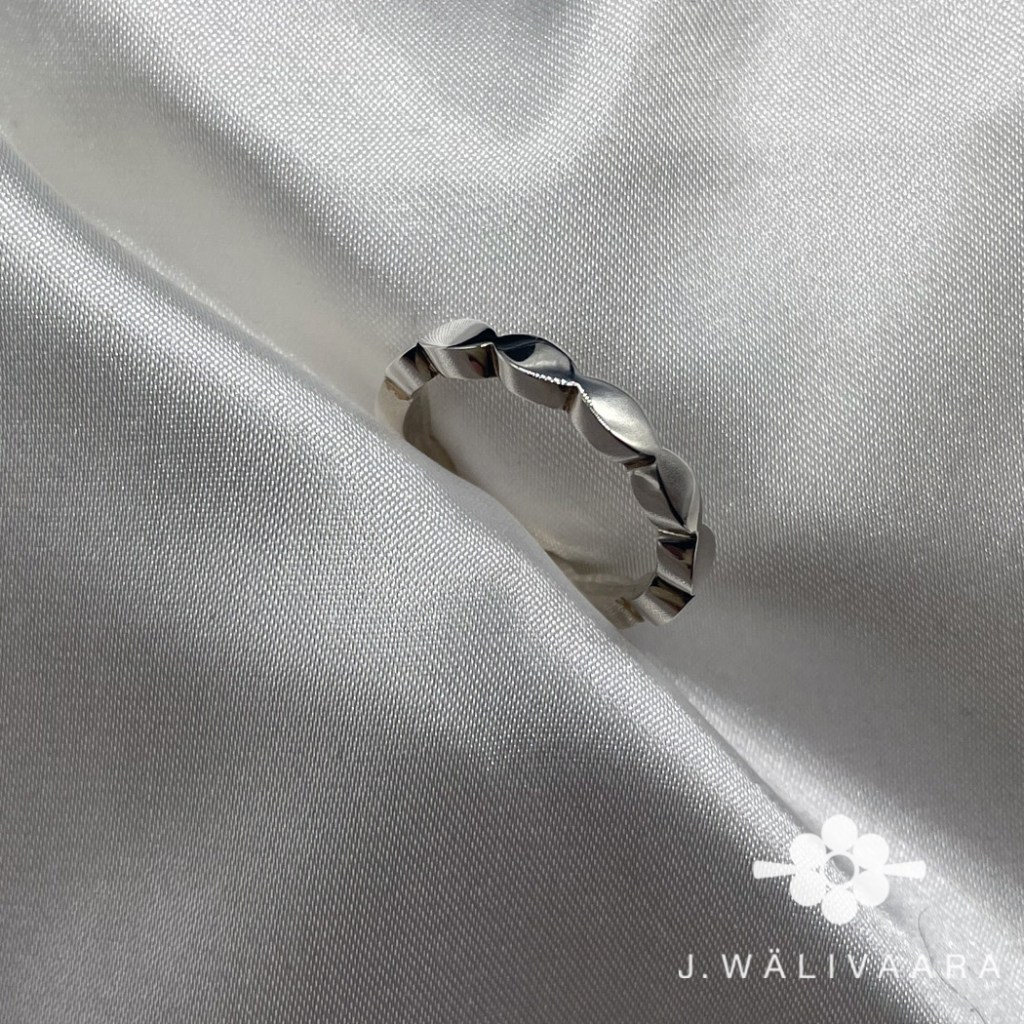 Jag arbetar i återvunnet Sterling silver, eller 925 som stämpeln i föremålet visar. Det är alltså 92,5% finsilver som är ljust och mjukt, resten av blandningen är koppar för att göra det mer motståndskraftigt. Det är såklart nickelfritt och den mest förekommande legeringen av silver som används till smycken.