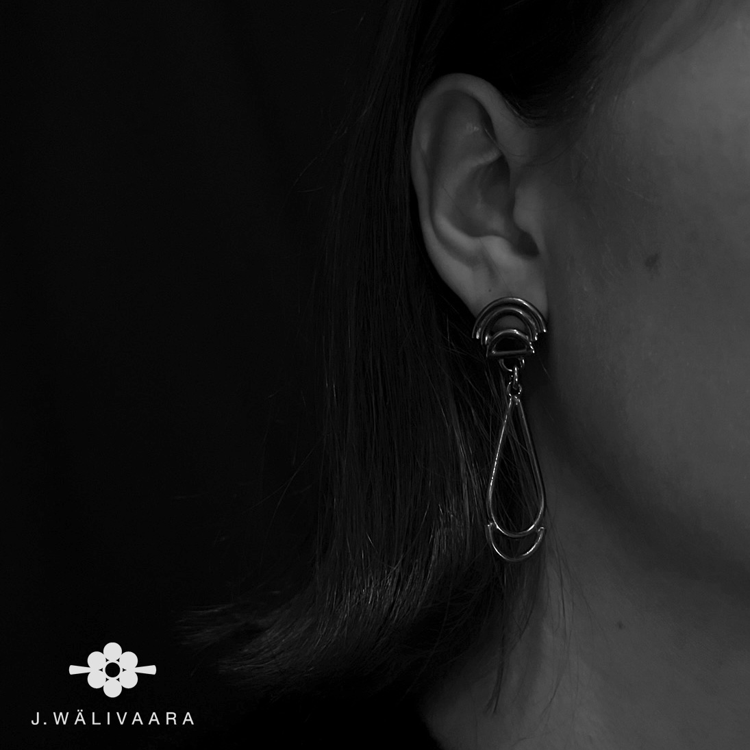 Det här är ett par örhängen som syns och känns! Blankt, Oxiderat silver med art deco inspirerad form.