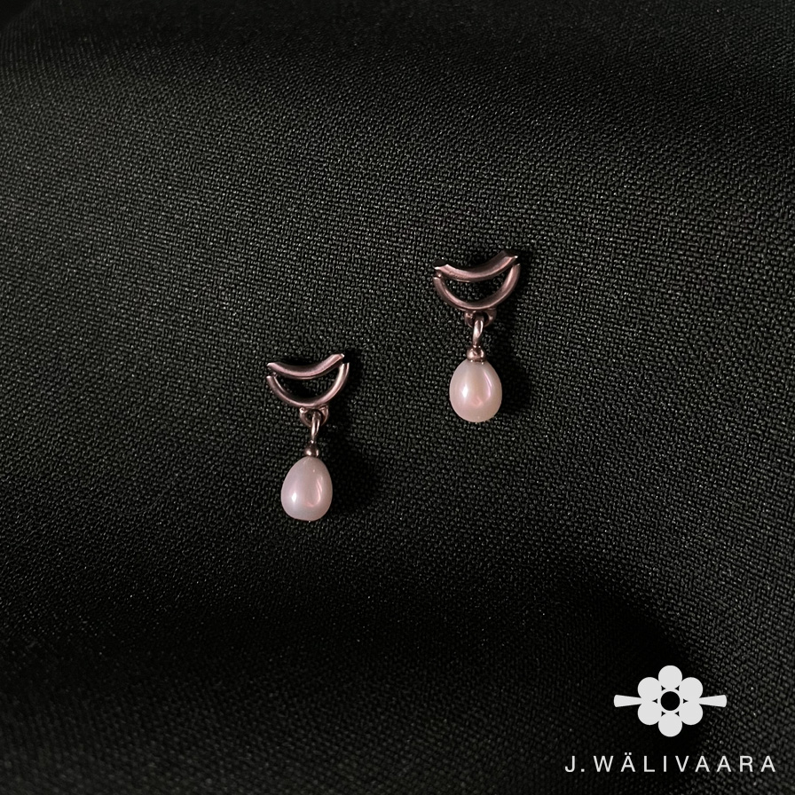 Oxiderat silver som ger en mörkare yta i kontrast mot den ljusa sötvattenspärlorna.
