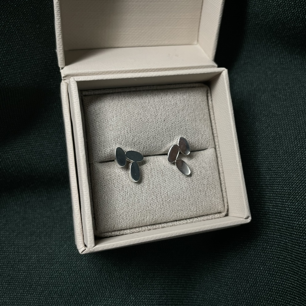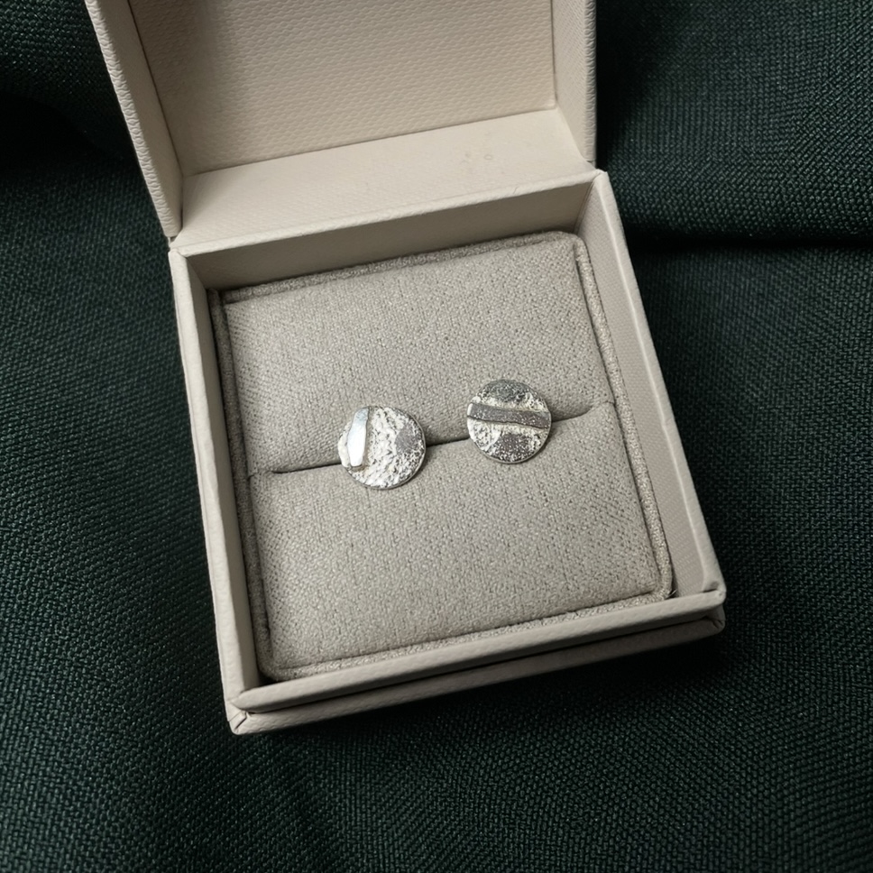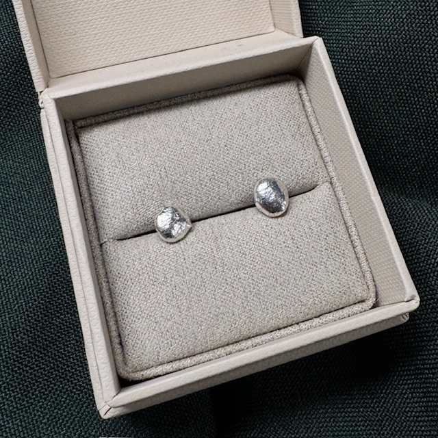 Stiftörhängen med smält yta i olika former.