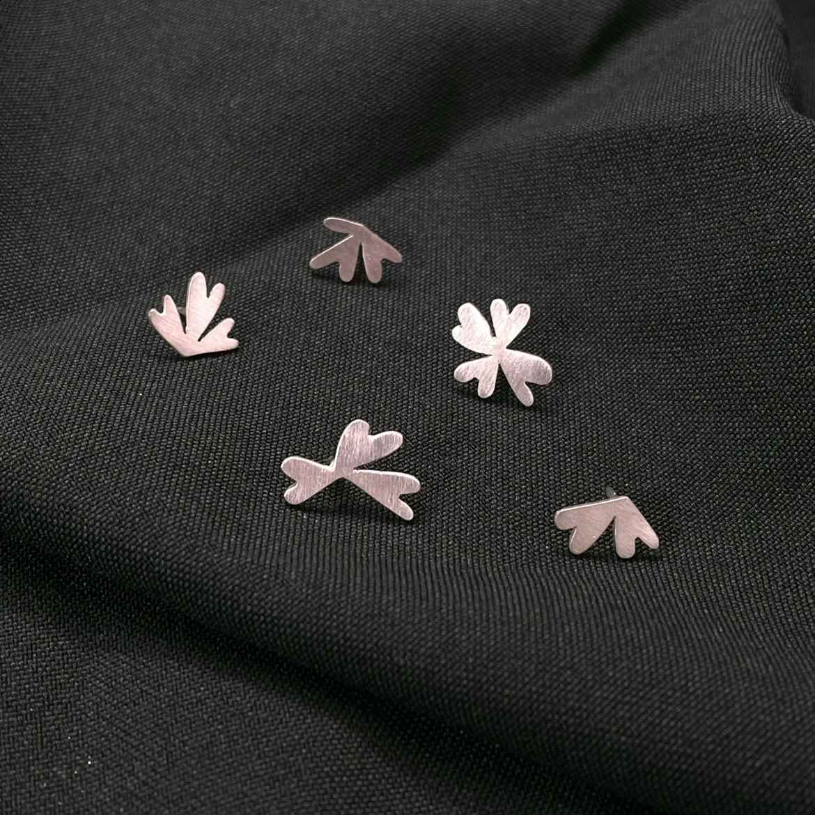 små Pins/broscher i 925 silver, matterad yta.